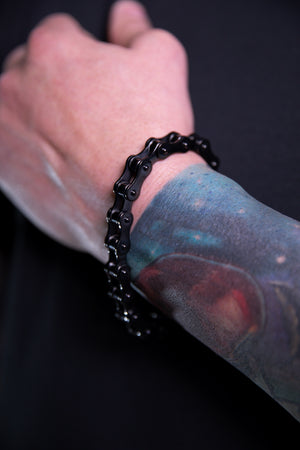 Crafted from durable 316L stainless steel, this bracelet combines strength with sleek design. Its bold bike chain links offer a modern, industrial edge, making it a standout accessory for those who appreciate tattoo-inspired streetwear aesthetics. Whether worn solo or layered, it serves as a statement piece that complements the tattoo lifestyle.